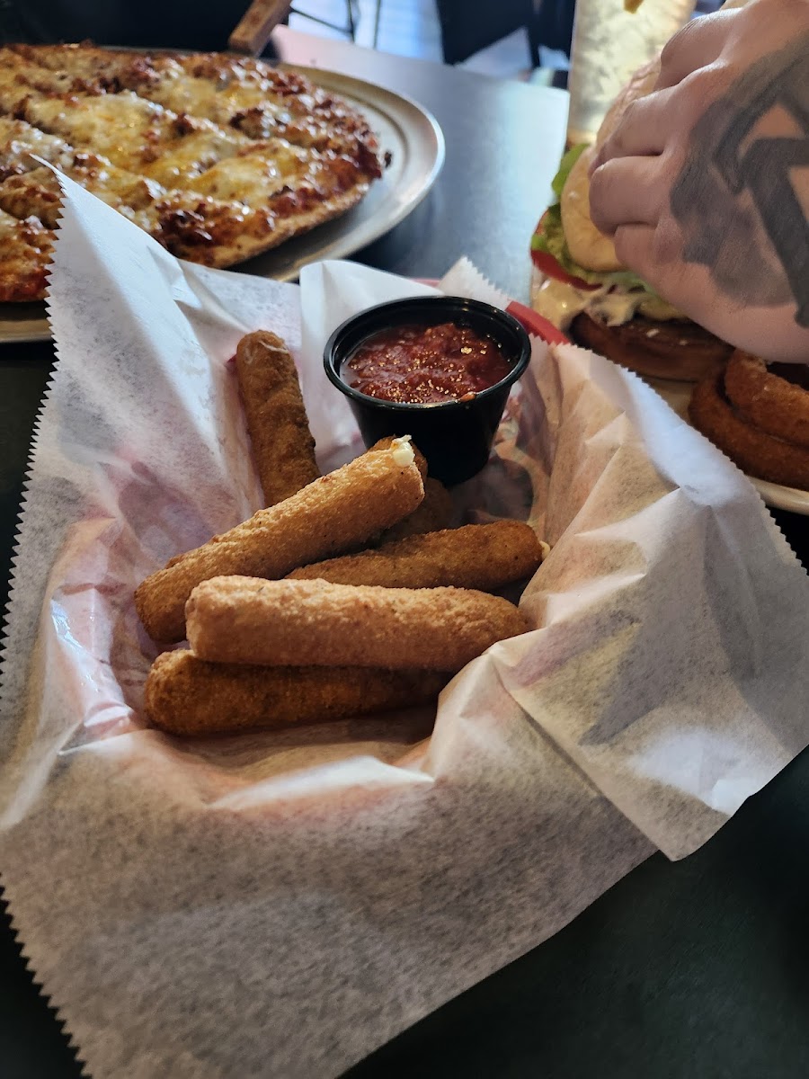 The establishment is quite spacious and has an open layout, although the parking lot may be a bit unconventional. The waitress was very friendly and attentive, which was truly appreciated. The menu offers a wide variety of options, perhaps it could be condensed slightly. The dishes we ordered for the table were all well received and enjoyed by everyone. The pickles were freshly battered and delicious, while the wings were crispy, freshly prepared, and generously coated in sauce. The side of carrots and celery were also fresh and cut nicely. Overall, we had a great experience and are excited to come back and try more items on the menu.